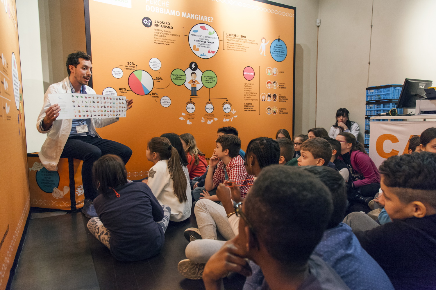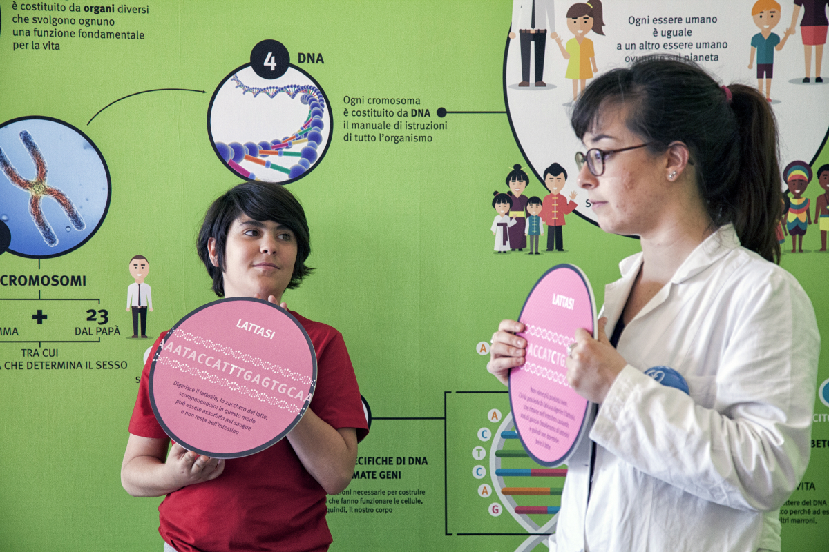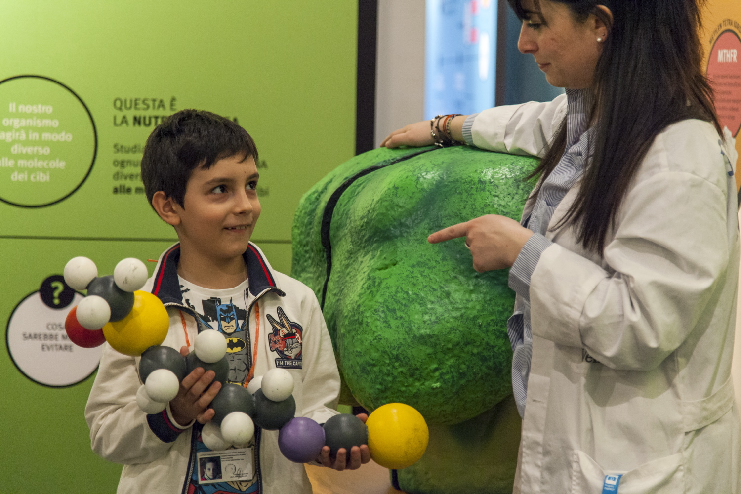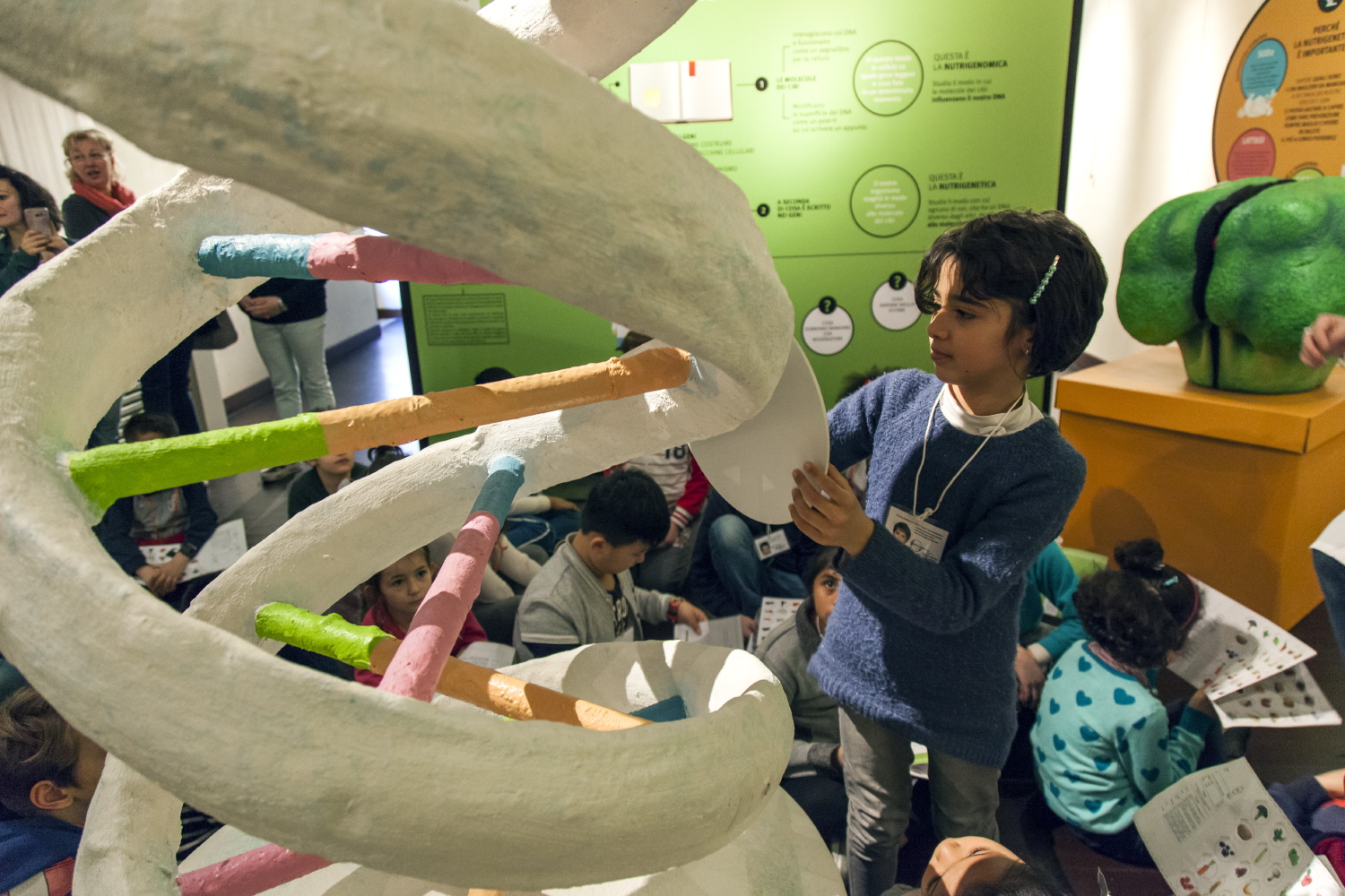 Attraverso un percorso interattivo e sorprendente, i ragazzi esplorano la relazione tra il cibo e il nostro patrimonio genetico per capire come il cibo interagisce con le cellule e con il DNA e determina la nostra salute.