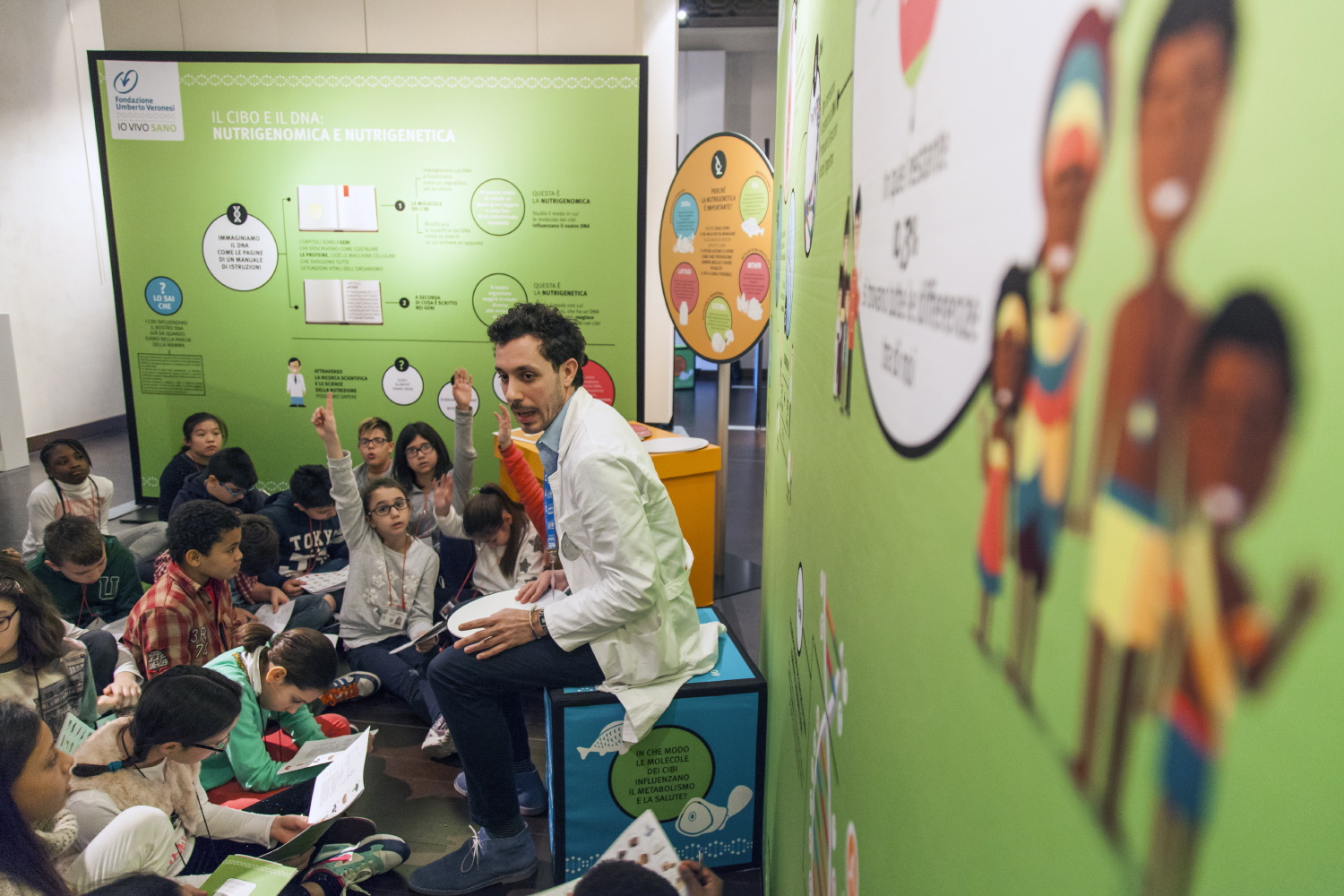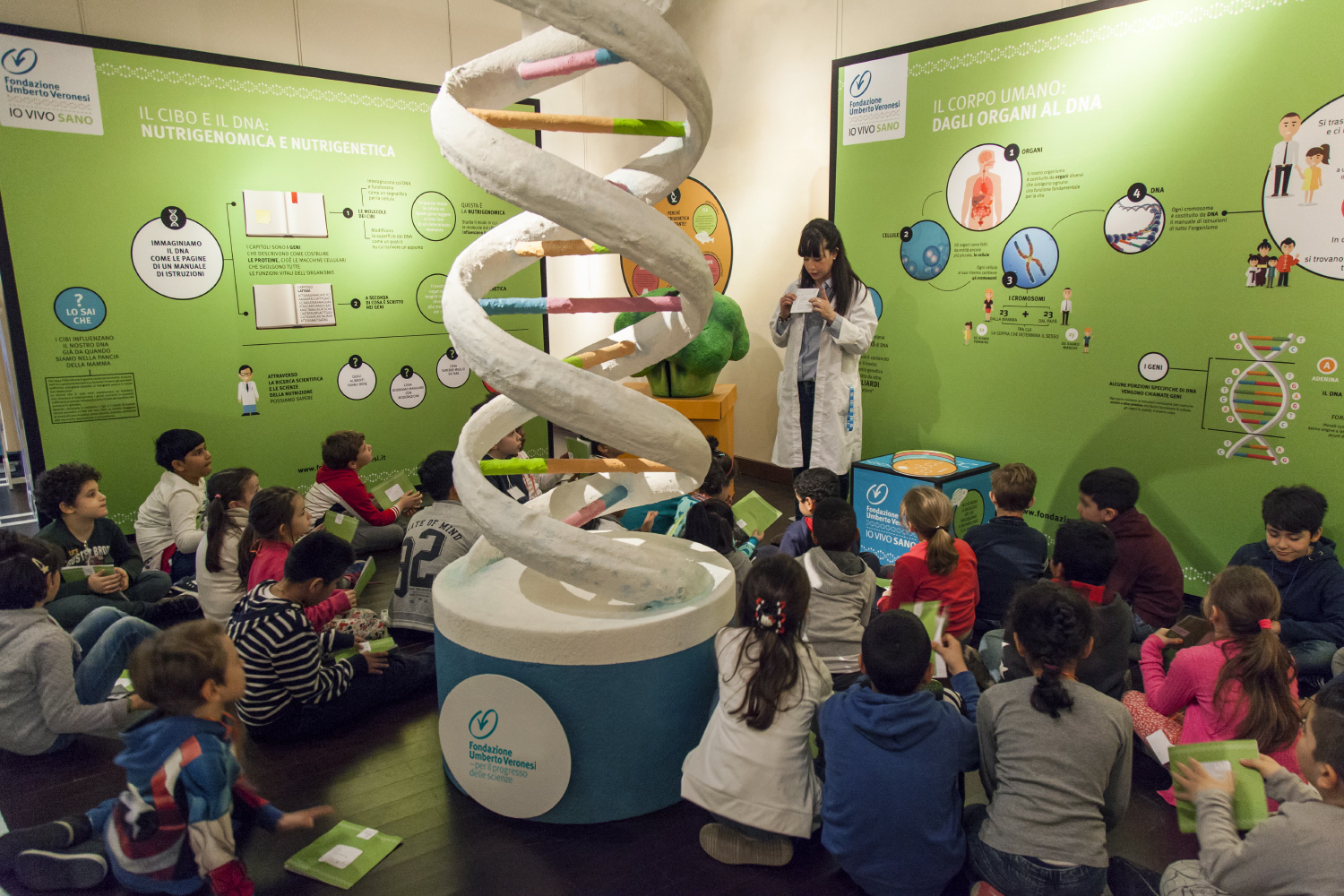 Guidati dai divulgatori scientifici di Fondazione Veronesi e con l’ausilio di alcuni materiali didattici, la mostra “Io Vivo Sano – alimentazione e DNA” chiarisce l’importanza della prevenzione primaria (quella che si mette in atto con i comportamenti quotidiani), secondo un percorso articolato in 3 momenti: