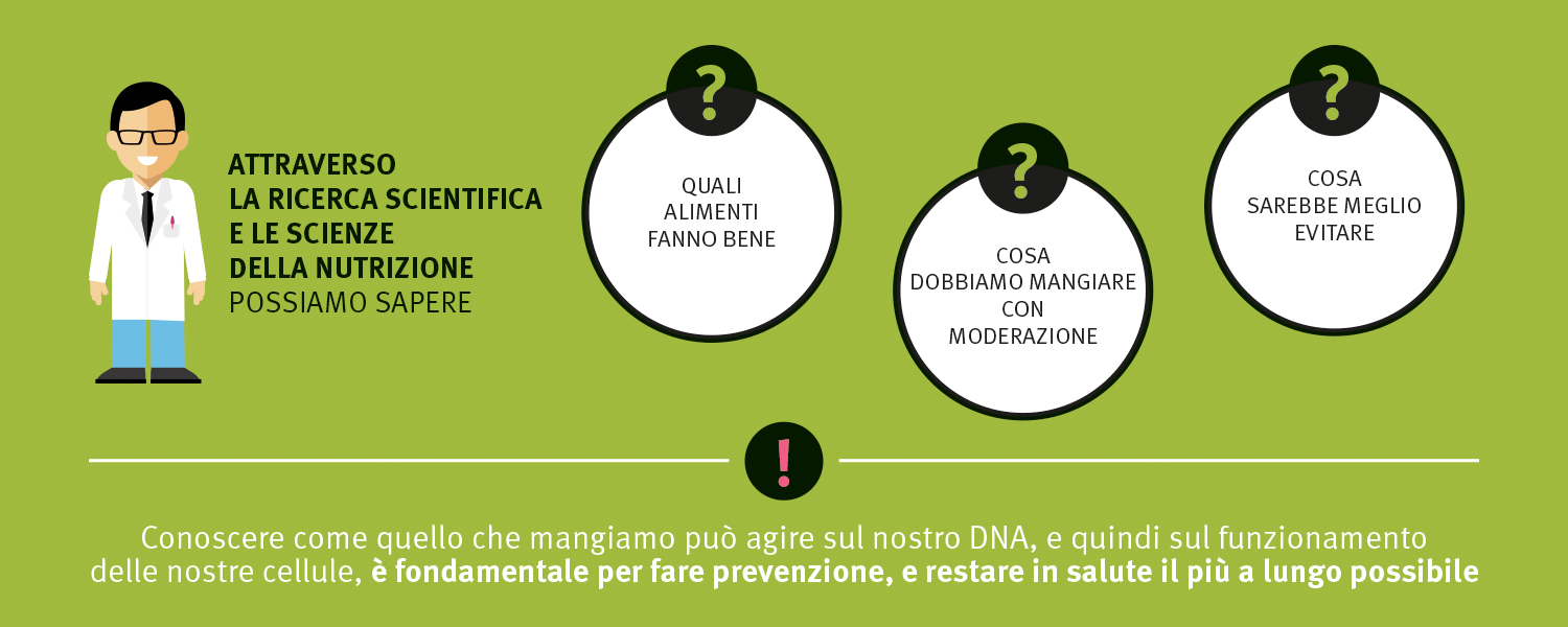 La nutrigenetica, invece, studia il modo in cui ognuno di noi, che ha un DNA diverso dagli altri, reagisce alle molecole presenti nei cibi.